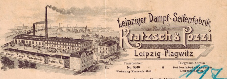 Im Jahre 1898 reichte Wilhelm Kratzsch Bauunterlagen im Zusammenhang mit der Gründung einer Dampfseifenfabrik ein. Noch im gleichen Jahr wurde von den beiden Kaufleuten Wilhelm Kratzsch und Max Pozzi eine Dampfseifenfabrik gegründet.